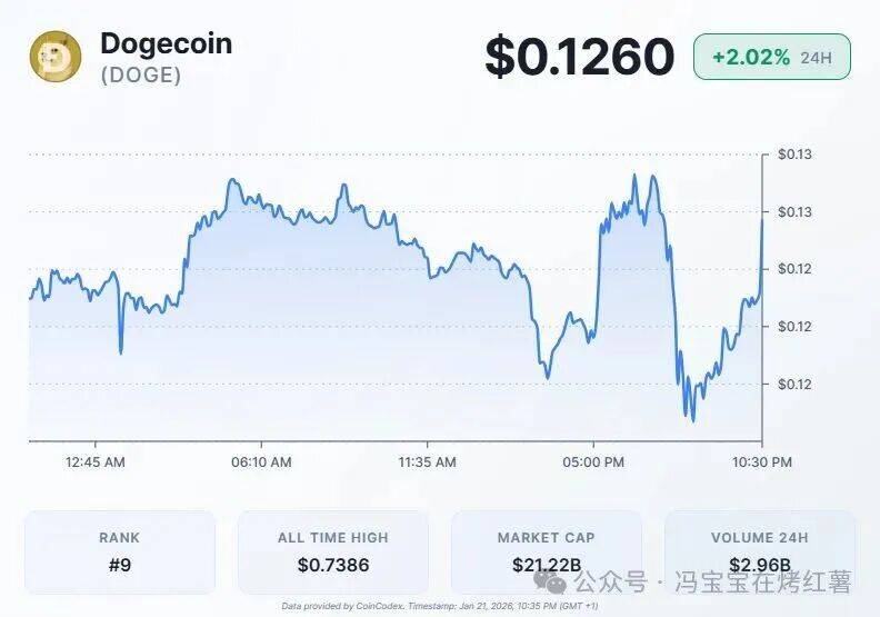 风暴来得突然。狗狗币价格从日内高点0.1263一路急坠至0.1216,短时间内跌幅显著。
